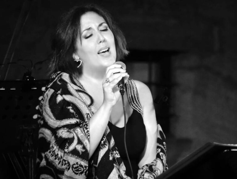 Nella foto Chiara Mattioli (voce), una delle protagoniste del concerto “Omaggio a Milva – da Berlino a Buenos Aires” in programma alle 5.45 di domenica 17 luglio