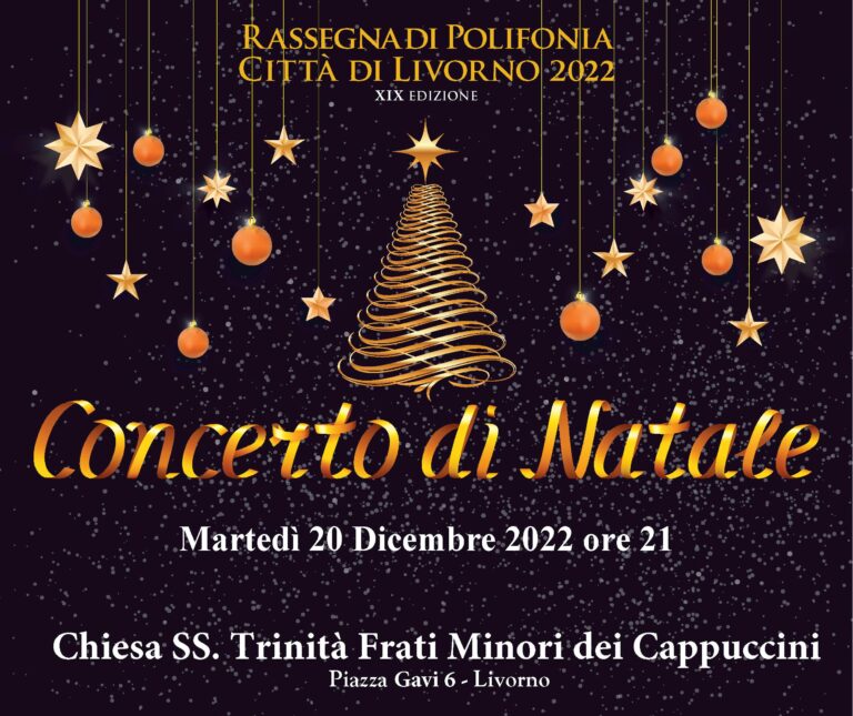 Martedì 20 alle 21.15 nella chiesa della SS. Trinità dei Frati Minori dei Cappuccini, in piazza Gavi, si terrà il concerto di Natale del Coro Rodolfo Del Corona diretto dal M° Luca Stornello, che quest’anno sarà anche l’evento di apertura della XIX Rassegna di Polifonia Città di Livorno che vedrà all’interno del suo cartellone 5 concerti con cadenza mensile in cui sfileranno ensemble vocali di altissimo valore artistico. Segnaliamo il secondo appuntamento della Rassegna che si svolgerà presso il Teatro Goldoni- Goldonetta il 12 gennaio ore 21 con Odhecaton diretto dal M° Paolo Da Col richiamando l’attenzione a livello nazionale degli appassionati della polifonia.