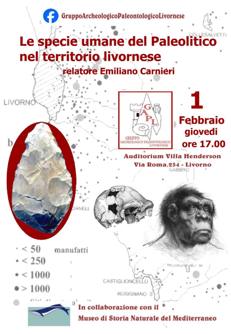 Appuntamento giovedì 1 febbraio, alle 17 al Museo di Storia Naturale del Mediterraneo, con la conferenza “Le specie umane del Paleolitico nel territorio livornese” organizzata dal Gruppo Archeologico Paleontologico Livornese
