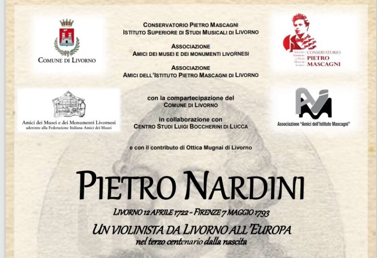 Via al Festival Pietro Nardini (Livorno 12, aprile 1722 – Firenze 7, maggio 1793), un violinista da Livorno all’Europa, che si svolgerà il 12 e 13 aprile a Livorno, all’Auditorium del Museo di Storia Naturale di Villa Henderson e al Teatro 4 Mori (clicca qui o sul link in fondo all’articolo per consultare il pdf del programma). Il Festival è organizzato, nella ricorrenza del trecentesimo anniversario della nascita del compositore livornese, dal Conservatorio Pietro Mascagni, dall’Associazione Amici dei Musei e dei Monumenti livornesi, dall’Associazione Amici dell’Istituto Pietro Mascagni, con la compartecipazione del Comune di Livorno, in collaborazione con il Centro Studi Luigi Boccherini di Lucca e con il contributo di Ottica Mugnai di Livorno. Il Comitato Scientifico del Festival è composto da Marie Rouquié, Enrico Gatti, Matteo Giuggioli, Federico Marri, che del Festival è anche direttore artistico, e del direttore del Conservatorio di Livorno Renato Meucci.