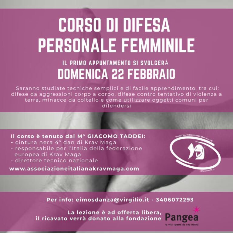 Domenica 22 febbraio, presso il Centro di formazione Danza Eimos Livorno, si terra il primo appuntamento del Corso di Difesa Personale Femminile, tenuto dal maestro Giacomo Taddei.