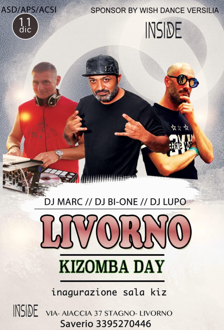 Una giornata intera dedicata alla Kizomba. Ecco il Kizomba Day che prenderà piede domenica 11 dicembre all’Inside di via Aiaccia, 37 a Stagno. A far girare la musica saranno Dj Marc (Marco Barbieri), Dj Bi-One (Sefket Selimov) e Dj  Lupo (Francesco Lupacchino) che a partire dalle 15 fino a chiusura del locale (ore 2 del mattino) animeranno la situazione con ben 12 ore di Social Kizomba.
