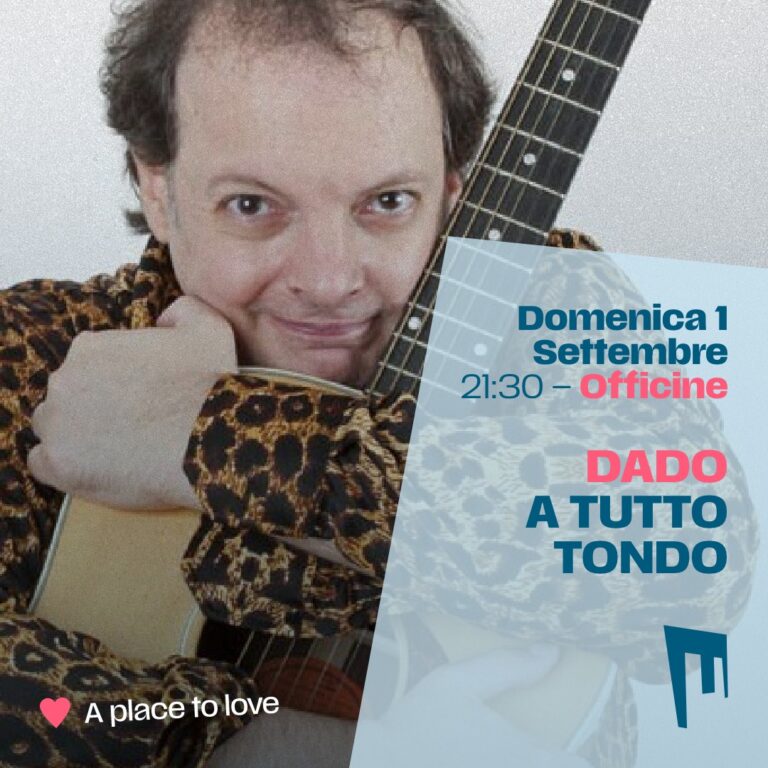 Domenica 1 settembre alle ore 21:30, la galleria delle Officine Storiche ospiterà il secondo appuntamento della rassegna comica dal titolo “Domeniche da ridere a Porta a Mare”. Dopo il grande successo di Gene Gnocchi, è la volta di Dado, pronto a stupire tutti con il suo spettacolo dal titolo “A tutto tondo“. Con il suo atteggiamento mite e dimesso ed il suo aspetto riservato, Dado riesce sempre a ingannare il proprio pubblico, nascondendo una forza dissacrante verso tutti i luoghi comuni e ogni tipo di convenzione. Presenza mite, sempre pronta a sorprendere lo spettatore con la sua mimica clownesca e le sue canzoncine brevi ma taglienti, è pronto per uno spettacolo che travolgerà tutti. Uno spettacolo totalmente gratuito e adatto a tutti nel quale Dado con la sua naturalezza e una grande prova d’attore, è sempre protagonista con una raffica ininterrotta di parodie in musica e tante irriverenti battute tipiche della comicità che l’ha reso famoso al grande pubblico televisivo nazionale. Preparatevi a una serata di risate e sorprese con uno spettacolo che non dimenticherete. Gli eventi di Porta a Mare, non finiscono mai. Scoprili tutti su livorno-portamare.it e sui nostri social.