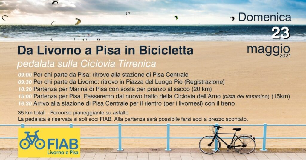 Domenica 23 maggio Fiab Livorno, in collaborazione con Fiab Pisa, organizza una