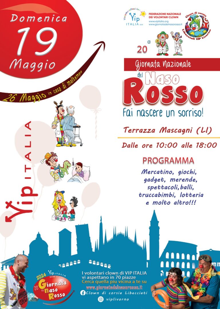 Torna in città la Giornata del Naso Rosso (GNR) che si svolgerà domenica 19 maggio alla Terrazza Mascagni. Dalle 10 del mattino fino alle 18 i clown di corsia dell’associazione VIP (Viviamo In Positivo) saranno protagonisti a due passi dal mare per una giornata da non perdere. Gag, palloncini, divertimento, musica e balli di gruppo per grandi e piccini. Il tutto con i fantastici quaranta clown che ogni settimana riempiono le corsie dell’ospedale di Livorno e non solo facendo sorridere la dove ce n’è più bisogno.