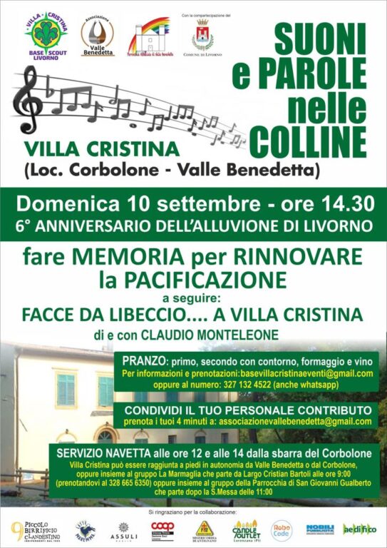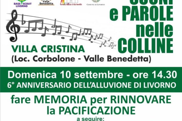 Domenica 10 settembre le associazioni scout di Livorno, insieme all’associazione Valle Benedetta e alla Parrocchia di san Giovanni Gualberto, danno appuntamento a chi vorrà trascorrere una bella giornata nella natura a Villa Cristina, in località Corbolone (nelle colline della Valle Benedetta). Sarà l’occasione per ricordare e fare memoria dell’alluvione del 2017: chi vorrà, potrà percorrere a piedi o in bicicletta alcuni percorsi e ritrovarsi intorno all’ora di pranzo a Villa Cristina (nei pressi della Sambuca). Sarà previsto un servizio di navetta esclusivamente alle ore 12 e alle ore 14.