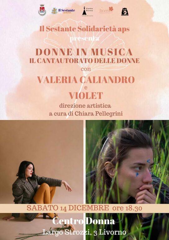 Dopo i due precedenti appuntamenti dedicati alle donne nella musica popolare e alla lotta contro la violenza sulle donne, la rassegna si concluderà con “Il Cantautorato delle Donne”. A esibirsi due artiste d’incredibile talento: la giovanissima artista emergente Violet con i suoi pedali e suoni elettronici e Valeria Caliandro, cantautrice toscana con una grande esperienza alle spalle, pianista, cantante ed insegnante che si esibirà in “solo”.