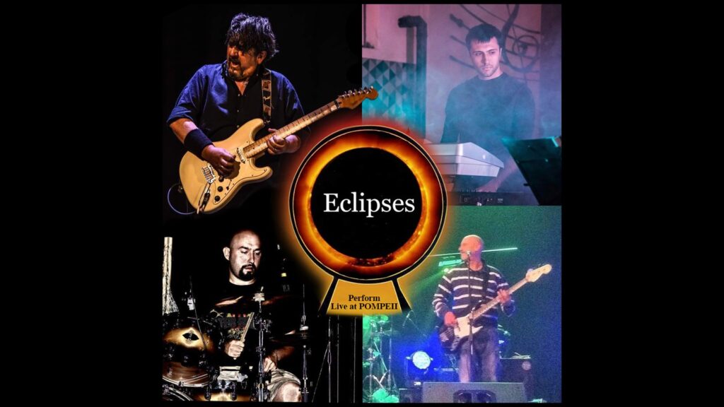 La cover band Eclipses, fondata dal chitarrista Giacomo Ferrigno, suonerà il 22 aprile prossimo al The Cage e porteremo il famoso concerto-film. La cover band asce nel 2020 con l’intento di riproporre il sound dei Pink Floyd nei primi anni della loro carriera e nello specifico rappresentare in occasione del 50° anniversario, il famosissimo film concerto “Live at Pompeii” del 1972. Il resto della band è composta da Marcello Lelli al basso, Enrico Angeli alla batteria e Andrea Stoppa alle tastiere . Le origini del sound psichedelico dei Pink Floyd rispecchiano la magia e l’atmosfera di un eclissi, da questo l’origine del nome della band.