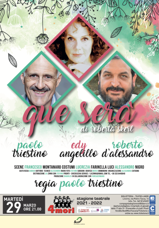 Botteghino presso teatro 4 Mori martedì e giovedì e il giorno dello spettacolo dalle 17,00 alle 19,00