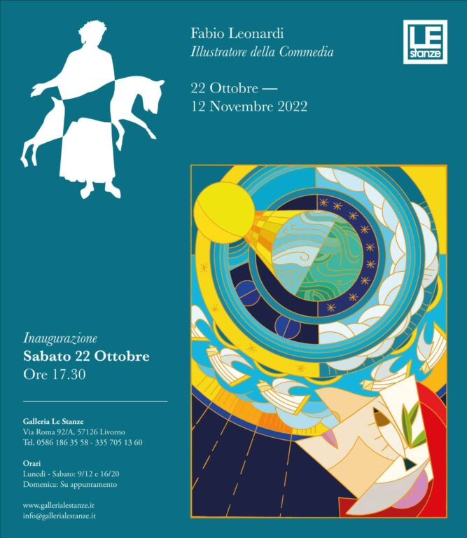 In mostra opere grafiche che raffigurano episodi tratti dai Canti della Divina Commedia, riguardanti le tre cantiche. Fabio Leonardi si proietta con la sua opera grafica nelle difficili e profonde tematiche che la Commedia di Dante suggerisce e lo fa con sagacia e personalità. Uno stile, il suo, che racchiude in sé i movimenti pittorici più importanti del Novecento, dal futurismo al cubismo ed oltre e li trascina nel nuovo millennio. Questa mostra è frutto di un dialogo iniziato tempo fa tra l’artista e Giacomo Romano, direttore della Galleria Le Stanze e ideatore di – Danteingalleria canti sparsi- iniziativa che Romano porta avanti da diversi anni e che lo vede protagonista nel diffondere la Commedia spiegata anche attraverso l’utilizzo di immagini di opere d’arte. La mostra è corredata di un catalogo con la presentazione del Prof. Giorgio Mandalis. Galleria Le Stanze dal 22 ottobre al 12 novembre 2022
