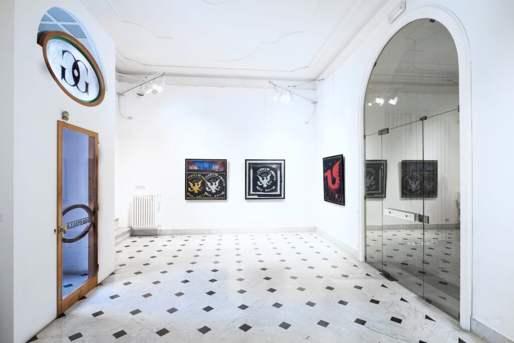 Come scrive Giorgio Guastalla nella sua introduzione al catalogo, il suo rapporto con Franco Angeli nacque negli anni ’70 grazie alla presentazione di Renato Guttuso ed è proseguito negli anni con incontri presso il suo studio a Roma e con l’acquisto di opere; spesso Franco passava anche dalla galleria di Livorno, prima di andare in vacanza a Forte dei Marmi e a Livorno risiedette per un breve periodo per realizzare le opere grafiche commissionate dalla Graphis Arte e che in questa occasione esponiamo: in quel periodo alloggiò all’Hotel Palazzo e questo episodio viene raccontato da Livia Lancellotti in un simpatico testo riportato all’interno del catalogo. Abbiamo selezionato da anni quadri, disegni, acquarelli per tentare di dare un’immagine di qualità di questo importante artista che insieme a Tano Festa e a Mario Schifano ha dato un forte impulso all’arte italiana del dopoguerra. Questi artisti della Scuola di Piazza del Popolo hanno indiscutibilmente segnato un periodo importante della storia dell’arte e del costume italiano, realizzando una svolta culturale e segnando indelebilmente un’epoca grazie al contributo innovativo e alla forte originalità che anticipa perfino alcuni esiti della Pop americana.