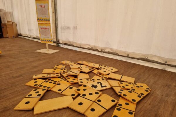 Un simpatico animatore e diversi giochi giganti, come il gioco dell’oca e il tris, ma anche intrattenimento con le bolle di sapone!