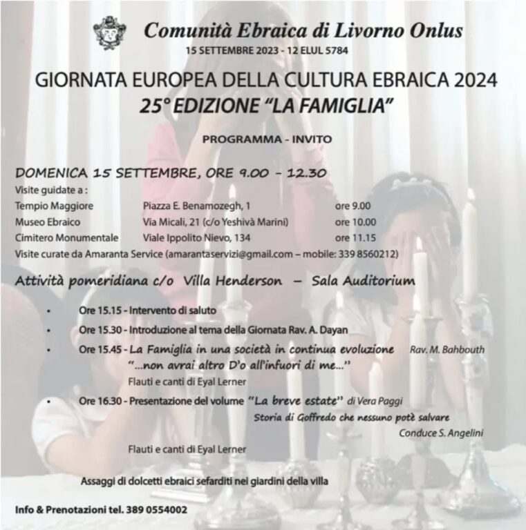 La Comunità ebraica di Livorno, che è stata tra le prime a partecipare a questa Giornata, presenta un calendario di iniziative, che si declinano durante l’intera giornata di domenica 15 settembre