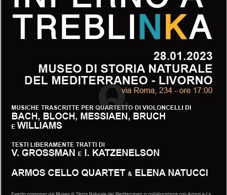 Queste lucide e cruente pagine – scritte da chi ha conosciuto di persona i pochissimi testimoni sopravvissuti e i carnefici di quel luogo – si concludono con i versi struggenti di una delle poesie di Itzhak Katzenelson, poeta e vittima della Shoah. Durante lo spettacolo le parole lasciano il posto al suono del quartetto di violoncelli e ai temi ebraici più celebri del repertorio violoncellistico, lasciando alla musica ciò che le parole non possono esprimere. Le musiche, adattate per quartetto di violoncelli, sono di Bach, Bloch, Messiaen, Bruch e Williams. I testi sono liberamente tratti da: V. Grossman e Katzenelson. Ingresso costo 10 euro. Prenotazione consigliata.