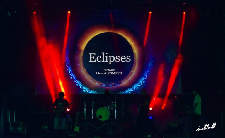 La cover band Eclipses, fondata dal chitarrista Giacomo Ferrigno, nasce nel 2020 con l’intento di riproporre il sound dei Pink Floyd nei primi anni della loro carriera e nello specifico rappresentare in occasione del 50° anniversario, il famosissimo film concerto “Live at Pompeii” del 1972. Il resto della band è composta da Marcello Lelli al basso, Enrico Angeli alla batteria e Andrea Stoppa alle tastiere. Le origini del sound psichedelico dei Pink Floyd rispecchiano la magia e l’atmosfera di un eclissi, da questo l’origine del nome della band.