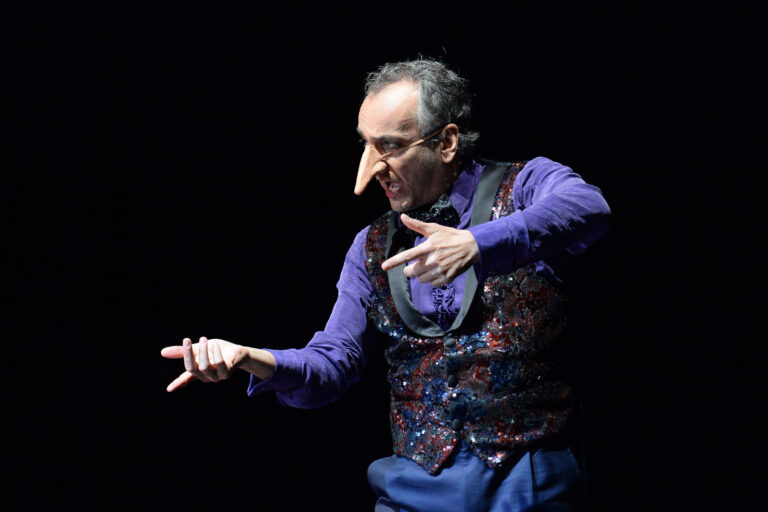 Martedì 20 dicembre, alle 21, per la stagione di Prosa andrà in scena al Teatro Goldoni lo spettacolo Cyrano de Bergerac di Edmond Rostand, adattato e diretto da Arturo Cirillo. Lo spettacolo è interpretato dallo stesso Cirillo con Rosario Giglio, Francesco Petruzzelli, Valentina Picello, Giulia Trippetta e Giacomo Vigentini che portano in scena l’indimenticabile storia d’amore di Cyrano, Rossana e Cristiano, contaminandola con musiche e canzoni del varietà e del teatro-canzone novecentesco. In un carosello di mantelli, piume, cappelli a cilindro e paillettes il poeta spadaccino abbandonerà le sue malinconie per diventare un performer, che soltanto sul palco riesce a riconoscersi fino in fondo. Non solo parole e poesia, dunque, ma un vero e proprio spettacolo musicale che ci restituirà il nasuto guascone in una forma ancora più visionaria – ma certamente più umana – lasciando da parte il canone dell’uomo di spada ed eroe della retorica.