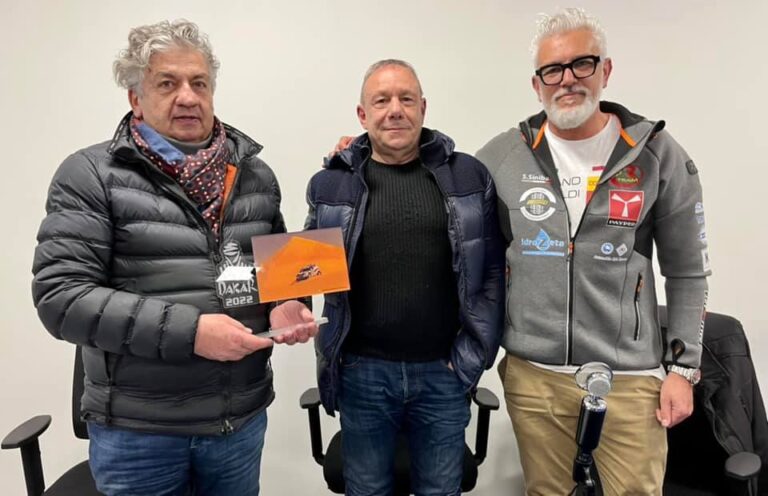 L’occasione di ritrovarsi è stata offerta dall’Automobile Club Livorno per omaggiare Stefano Sinibaldi, pilota-navigatore della nostra provincia che da poco ha portato a termine con successo l’avventura sportiva della Dakar 2022 al fianco del driver romagnolo Andrea Schiumarini a bordo della Mitsubishi Pajero WRC+ preparata da RTeam (nella foto: da sx verso dx, il Presidente ACi Livorno Sport Luciano Fiori, il Presidente dell’Automobile Club Livorno Marco Fiorillo e il premiato Stefano Sinibaldi).