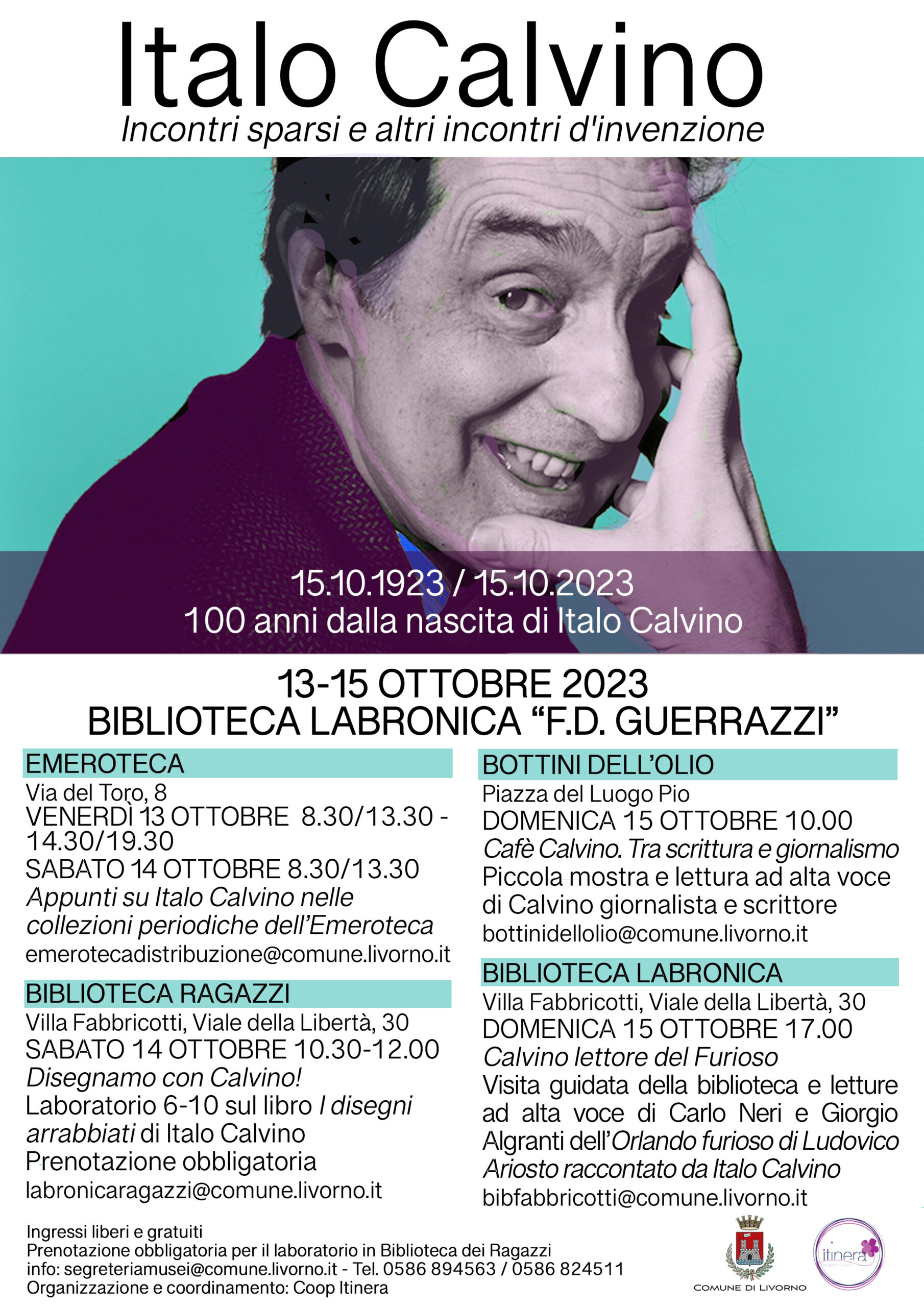 Il 15 ottobre di cento anni fa nasceva a Cuba Italo Calvino (1923-1985), destinato a diventare uno degli scrittori italiani più importanti e più amati del secondo Novecento. Per questa occasione il Sistema bibliotecario del Comune di Livorno, in collaborazione con Cooperativa Itinera, ha organizzato due giorni di incontri per indagare sugli aspetti poliedrici e sfaccettati di un autore adatto a tutte le generazioni. Italo Calvino, Incontri sparsi e altri racconti d’invenzione è l’omaggio che la Biblioteca Labronica ha preparato per ricordarlo. Dal 13 al 15 ottobre piccole mostre, laboratori e letture teatralizzate sono in programma nelle varie sedi cittadine, un’opportunità per dare voce, vedere e ascoltare alcuni esempi di una produzione vastissima. Partigiano e intellettuale impegnato nel mondo civile, conoscitore d’arte e di cinema, agronomo, matematico, internazionale e viaggiatore. Ma anche uomo di intelligenza limpida, sistematico e metodico, fantasioso e visionario, autoironico e autocaricaturale. Non c’è argomento di cui non si sia occupato come scrittore o saggista versatile e appassionato. La programmazione si apre presso i locali dell’Emeroteca di Via del Toro con una piccola esposizione di articoli nati per la Terza Pagina, lo spazio storicamente dedicato dai quotidiani italiani alla cultura. Appunti sparsi nelle collezioni periodiche dell’Emeroteca – appunto – di un’attività giornalistica spesso poco conosciuta e utilizzata da Calvino come strumento per raccontare la sperimentazione della letteratura e della cultura italiana a cavallo tra anni Cinquanta e inizio Ottanta. Lodolinda, la bambina del racconto I disegni arrabbiati che Calvino pubblica per la prima volta nel 1977 sulle pagine de Il Corriere dei piccoli, è invece la protagonista del laboratorio Disegniamo con Calvino! Rivolto alla fascia di età 6-10 si terrà presso la Biblioteca dei Ragazzi, dove attraverso il kamishibai – antico metodo giapponese di raccontare storie – l’edizione con le illustrazioni di Giulia Orecchia trasporterà bambine e bambini nel mondo delle emozioni. Alla Biblioteca dei Bottini dell’Olio, Cafè Calvino, tra scrittura e giornalismo è il titolo della piccola mostra con lettura ad alta voce di pagine di giornali firmate Calvino: dai commenti come inviato speciale per L’Unità alle Olimpiadi di Helsinki del 1952 agli esempi tratti dal Menabò di letteratura, la rivista letteraria edita da Einaudi, fondata e co-diretta da Elio Vittorini e Italo Calvino dal 1959 al 1966.