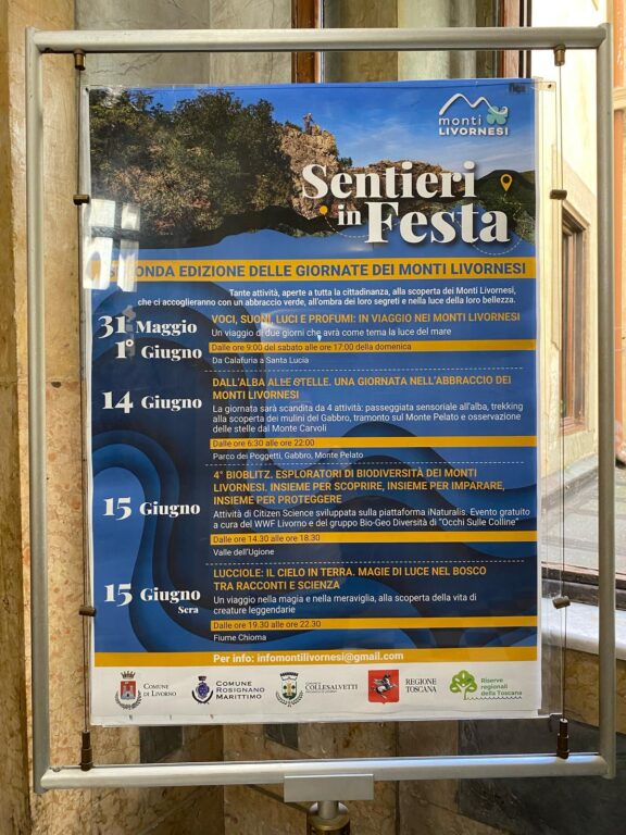 Il processo di costruzione del parco dei Monti Livornesi prosegue con degli incontri di definizione del regolamento. Importantissimo è anche evidenziare il lavoro dei tecnici Alessandro Ursi del Comune di Livorno, la dottoressa Anna Guerriero del Comune di Collesalvetti e Camilla Falchetti di quello di Rosignano, ancora impegnati nella costruzione. Oltre al lavoro legato ai sentieri, in corso è anche quello inerente alla segnaletica, grazie alla collaborazione del CAI, per la realizzazione di cartelli esplicativi. Intanto sei pannelli descrittivi delle varie zone sono già in loco, posizionati alle sei “porte” della Riserva. Numerosi meriti sono stati indirizzati anche alle diverse associazioni ambientaliste che continuano a partecipare ai tavoli di confronto. “Da non dimenticare è anche la collaborazione del WWF e di Occhi Sulle Colline, una rete di associazioni che, in questi anni, ha tenuto sempre viva l’attenzione e ha spinto non solo noi amministratori, ma anche la Regione Toscana”, ha infine aggiunto l’assessora Cepparello. Il primo appuntamento di “Sentieri in Festa” si terrà nel weekend del 31 maggio – 1° giugno e vedrà i partecipanti percorrere un percorso che va da Calafuria al Fortullino per un costo di partecipazione di 30 euro comprensivo di guida e pasti al sacco. Solo il primo e l’ultimo incontro della rassegna saranno a pagamento.