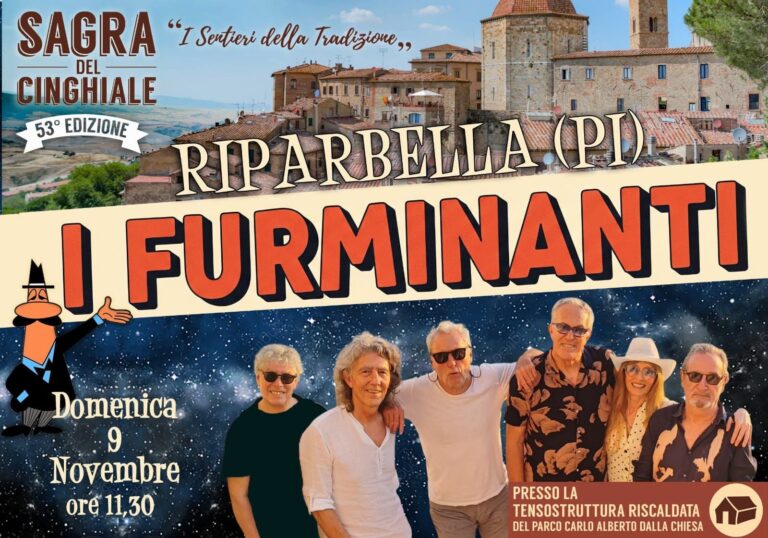 Furminanti in concerto domenica 9 novembre a Riparbella alla storica Sagra del Cinghiale, da più di cinquant’anni uno degli appuntamenti più importanti dell’enogastronomia toscana inserito nei Sentieri del Gusto