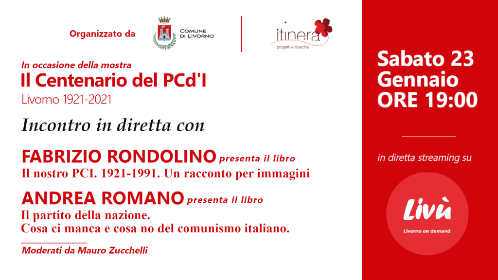 Iniziative LIVU’ per Centenario PCd’I con la collaborazione di Coop Itinera/LIVU’. Sabato 23 alle 19 in diretta su LIVU’ intervista con Fabrizio Rondolino e Andrea Romano. Presentazione dei libri: