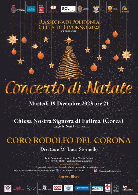 Si avvicina il Natale e, come oramai tradizione, arriva il momento del Concerto degli auguri offerto dal Coro Rodolfo Del Corona nell’ambito della XX Rassegna di Polifonia Città di Livorno, organizzata in compartecipazione e patrocinio con il Comune di Livorno, che si terrà martedì 19 dicembre alle 21 nella Chiesa di Nostra Signora di Fatima in via Fratelli Cervi 5 (quartiere Corea). La formazione cittadina, diretta da Luca Stornello, si esibisce ogni anno in un luogo diverso con l’intento di portare la polifonia nelle diverse parti della città, valorizzandone al tempo stesso le peculiarità architettoniche.