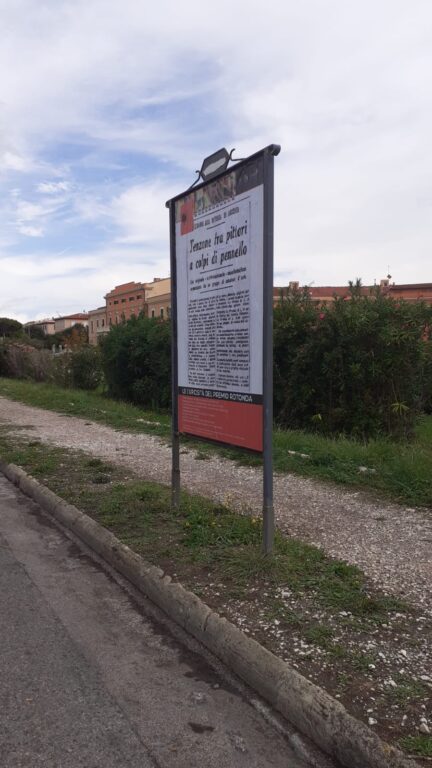 Le due ultime stazioni ci riportano sempre di fronte alla Baracchina Rossa, ma sul lato opposto della strada, dove si possono leggere alcune curiosità e nomi celebri che hanno fatto la loro comparsa nella storia. L’organizzazione dell’edizione 2022 del Premio Rotonda è affidata dal Comune di Livorno alla Fondazione d’arte Trossi-Uberti.