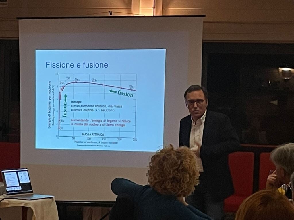 Con parole semplici lo scienziato ha spiegato concetti complessi e fatto capire temi affascinanti e quanto mai attuali. Con l’aiuto di slide, lo scienziato ha fatto una carrellata sulla storia del nucleare, sul suo uso per fini bellici, sulla guerra fredda e nuovi pericoli, sulle centrali nucleari del passato, del presente e del futuro, su fissione (il presente , che vede essere reso più sicuro) e fusione (il futuro, sul quale occorre investire) . Ha sfatato luoghi comuni e fornito gli strumenti per capire di cosa si parla quando si parla di energia nucleare. “ L’investimento in ricerca scientifica è la chiave per il nostro futuro – ha detto  il professor Forti concludendo la sua conferenza – e solo con lo sviluppo di nuove tecnologie potremo battere la sfida climatica: energie rinnovabili,  fissione nucleare resa più sicura, fusione nucleare promessa per il futuro”.