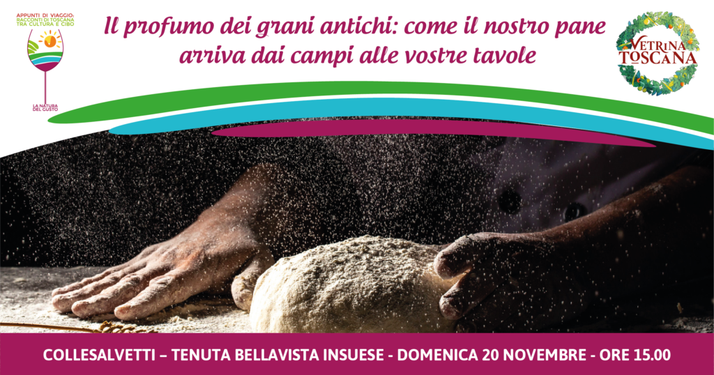 Nuovo appuntamento di Vetrina Toscana, iniziativa organizzata da Confesercenti con il patrocinio del Comune e il finanziamento di Regione Toscana e Camera di Commercio della Maremma e del Tirreno. Domenica 20 novembre alle 15 immersi nella natura della Tenuta Bellavista Insuese, ospiti di un’azienda agricola che ha fatto del rispetto del territorio, della valorizzazione delle risorse naturalistiche e del recupero delle produzioni tradizionali la propria filosofia di vita, daremo l’opportunità ai partecipanti di conoscere come si panifica con farina biologica di grani antichi. Seguiremo le mani esperte di un maestro panificatore come Claudio Pozzi che ci illustrerà in diretta tutti i passaggi essenziali per realizzare un pane di grani antichi andando a scoprire l’importanza di un rito vecchio come l’uomo e che può essere recuperato nelle nostre cucine di tutti i giorni, partendo da materie prima a km0 e di qualità. Sarà anche l’occasione per visitare l’azienda con una breve passeggiata al suo interno, per vedere da vicino i campi appena seminati con i semi di grani antichi ed il Lago Alberto. Al termine merenda/degustazione a base – ovviamente! – del pane appena sfornato e dei prodotti della stessa azienda (olio, marmellate etc.)