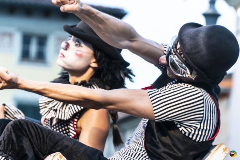 Uno spettacolo muto di acrobazie clownesche. Un cabaret da strada immaginifico dove i numeri di acrobatica, giocoleria e pantomima sono eseguiti da due personaggi che viaggiano tra il clown e il film muto.