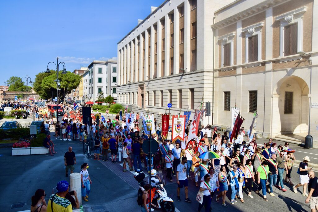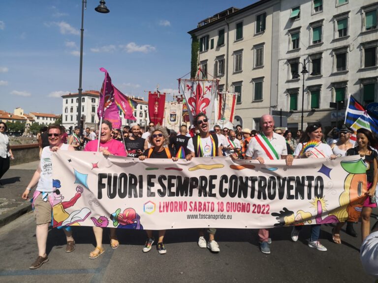 La Toscana dei diritti si ritrova a Livorno. Sono stati migliaia a sfilare il 18 giugno nel coloratissimo corteo del Toscana Pride (il programma) all’insegna dello slogan “Fuori e sempre controvento” che contrassegna l’edizione di quest’anno. “Per le istituzioni è un dovere essere qua – commenta l’assessora Alessandra Nardini che ha la delega alle pari opportunità e all’attuazione della legge regionale contro le discriminazioni per orientamento sessuale e identità di genere, accompagnata dal Gonfalone della Regione – la Regione ha dato il suo patrocinio a questa manifestazione con grande convinzione e oggi siamo a Livorno, finalmente di nuovo in presenza alla grande parata, per testimoniare il nostro impegno al fianco della comunità Lgbtqia+. La Toscana, come andiamo ripetendo, è da sempre terra di diritti, è da sempre in prima linea nella lotta contro le discriminazioni per orientamento sessuale e identità di genere. Dopo essere stata la prima regione a dotarsi di una legge in questo senso, oggi chiediamo, insieme a tante amministrazioni comunali e provinciali in tutta la Toscana, che il Parlamento approvi finalmente una legge nazionale”. Anche il presidente del Consiglio regionale a Livorno Antonio Mazzeo ha partecipato alla sfilata. “Non possono esserci differenze. Tema diritti civili fra i primi dell’agenda politica italiana”. In corteo, tra gli altri, anche il sindaco Salvetti e il presidente della commissione Europa Francesco Gazzetti.