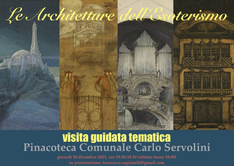 Nuovo appuntamento straordinario, giovedì 30 dicembre 2021, ore 15.30-18.30 (ultimo turno, ore 18.00 – su prenotazione: [email protected] / 392 6025703), alla Pinacoteca Comunale Carlo Servolini (Collesalvetti, via Umberto I, n. 63), con “Le Architetture dell’esoterismo”, terza visita guidata tematica prevista come ulteriore approfondimento del Calendario Culturale 2021/2022, “Oltre il velo di Iside”, promosso dal Comune di Collesalvetti, ideato e curato da Francesca Cagianelli, in collaborazione con Amici dei Musei e Monumenti Pisani e Società Teosofica Italiana, in occasione della mostra “Dans le noir. Charles Doudelet e il simbolismo a Livorno”, promossa da Comune di Collesalvetti, Fondazione Livorno, Fondazione Livorno – Arte e Cultura (fino al 20 gennaio 2022, tutti i giovedì, ore 15.30-18,30).