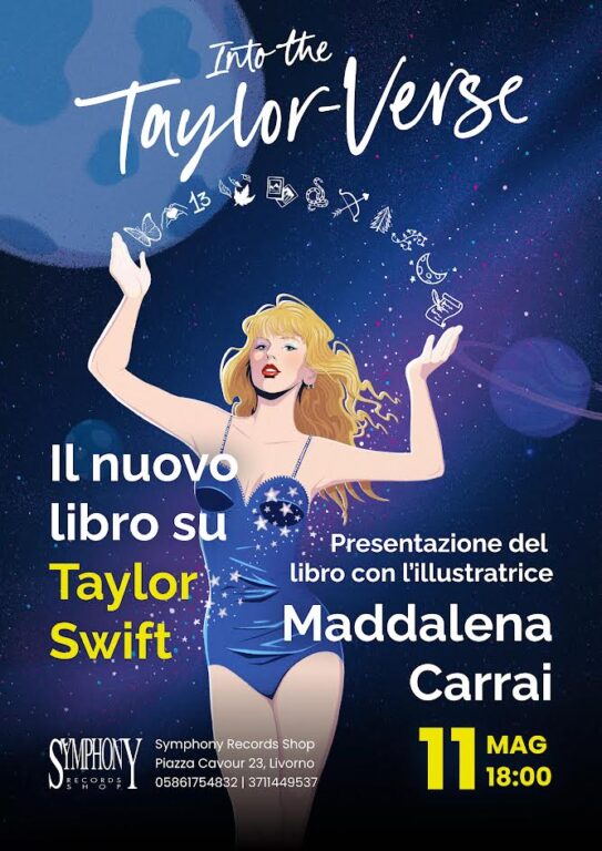 Sabato 11 maggio, alle 18, da Symphony record shop, piazza Cavour, 23, sarà presentato Into The Taylor Verse – Il nuovo libro su Taylor Swift, illustrato da Maddalena Carrai.