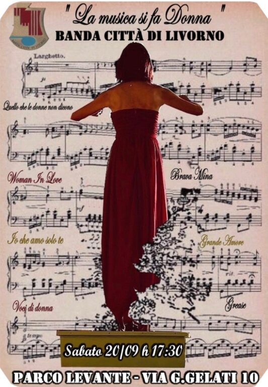 La Banda Città di Livorno vi aspetta sabato 20 settembre alle 17:30 al Parco Levante con un appuntamento davvero speciale: l’ultima replica del progetto musicale “La musica si fa donna”, prima di cambiare repertorio. Un’occasione da non perdere! Ideato e diretto dalla Prof.ssa Alessandra Luisini, il concerto racconta – tra note e canzoni indimenticabili – l’evoluzione del rapporto tra la donna e la musica dagli anni ’50 a oggi. Un viaggio che attraversa cambiamenti sociali, culturali e politici, celebrando le artiste che hanno lasciato il segno e il ruolo della figura femminile come musa e protagonista della scena musicale. La scaletta è un vero tuffo tra grandi emozioni: da Barbra Streisand a Mina, da Mia Martini a Fiorella Mannoia, passando per i brani iconici di Loretta Goggi, Caterina Caselli, Marcella Bella e tante altre voci che hanno fatto la storia.