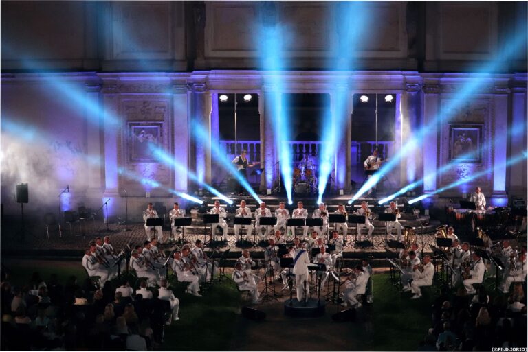 Note storiche – Nel 1861, con la nascita della Regia Marina Italiana, nasceva anche il suo primo complesso bandistico, un piccolo organico costituito da orchestrali provenienti in prevalenza dalle file della Marina Borbonica. La costituzione ufficiale del Corpo Musicale della Marina, uno dei più antichi complessi bandistici militari italiani, avvenne il 1° gennaio 1879 con l’istituzione della “Categoria Musicanti della Regia Marina” e con la conseguente creazione di una nuova struttura stabile presso l’Alto Comando della città di La Spezia. Dal 1965 al 1991, con la denominazione di Banda Centrale della Marina Militare, è stata alle dipendenze del Dipartimento Marittimo di Taranto e successivamente trasferita a Roma, dove attualmente risiede. Nel 1995 ha cambiato istituzionalmente nome, divenendo Banda Musicale della Marina Militare. La Banda si compone di un Maestro Direttore, un Maestro Vicedirettore, 102 Orchestrali e un Archivista, tutti in servizio permanente effettivo e tutti provenienti dai più famosi Conservatori di Musica. La Banda Musicale della Marina Militare è chiamata a svolgere la sua attività istituzionale sia in Italia che all’estero. Il suo repertorio abbraccia ogni genere musicale: classico, lirico, sinfonico, originale per banda, pop jazz e rock. La Banda attualmente è comandata dal Capitano di Fregata Aniello Grasso ed è diretta dal Capitano di Vascello Maestro Antonio Barbagallo.