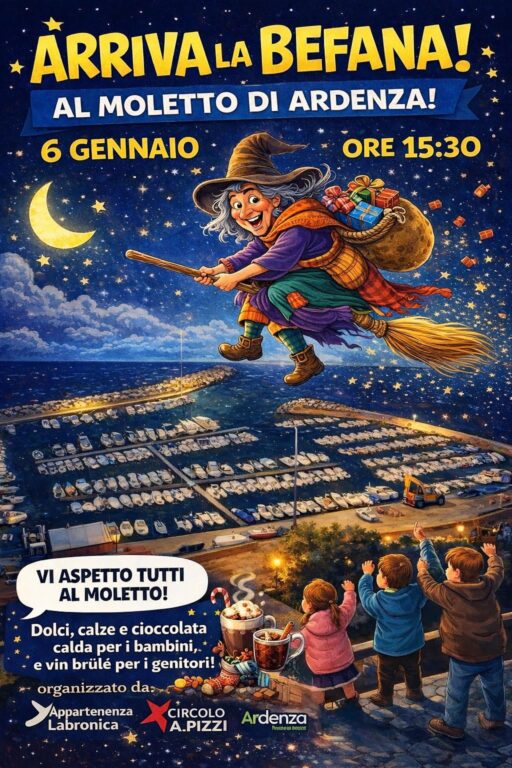 Martedì 6 gennaio, a partire dalle ore 15.30, il Moletto di Ardenza sarà teatro di un pomeriggio di festa dedicato soprattutto ai più piccoli con l’arrivo della Befana che sorvolerà simbolicamente il mare per portare dolci, sorrisi e un’atmosfera da fiaba. La Befana accoglierà le bambine e i bambini con calze, dolci e cioccolata calda, mentre per gli adulti non mancherà il vin brulé ideale per scaldarsi. L’invito degli organizzatori Appartenenza Labronica, Circolo A. Pizzi e Ardenza è chiaro: “Vi aspettiamo tutti al moletto per condividere un momento di festa che unisce generazioni diverse nel segno della tradizione”.