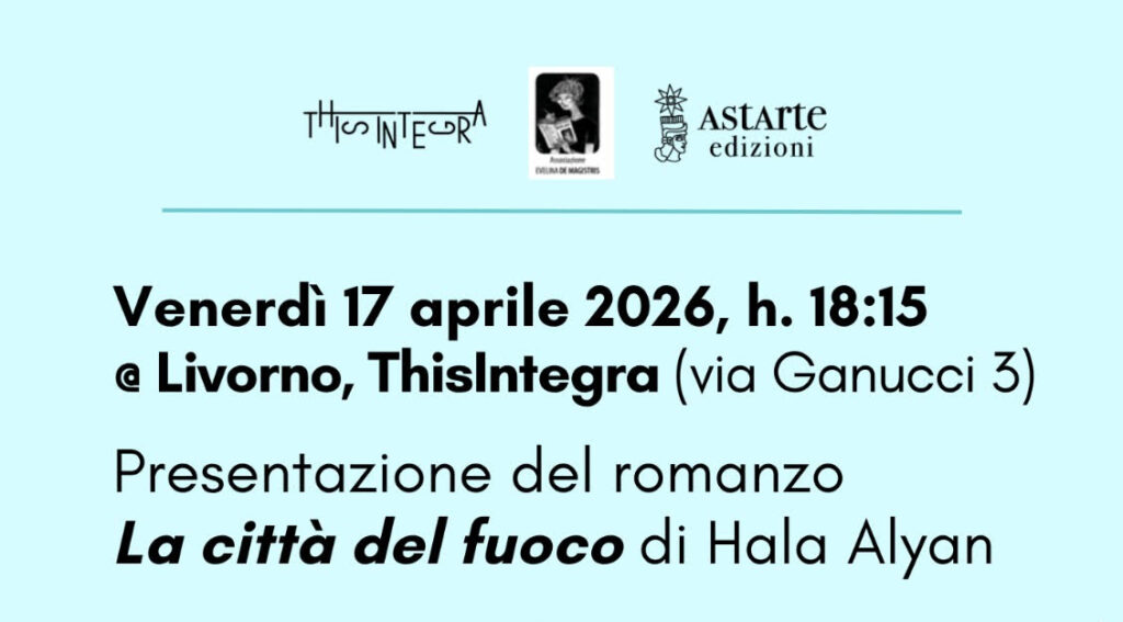 Venerdì 17 aprile alle 18.15 a Livorno, negli spazi di ThisIntegra (via Ganucci 3), si terrà la presentazione del romanzo “La città del fuoco” di Hala Alyan, pubblicato da Astarte Edizioni.