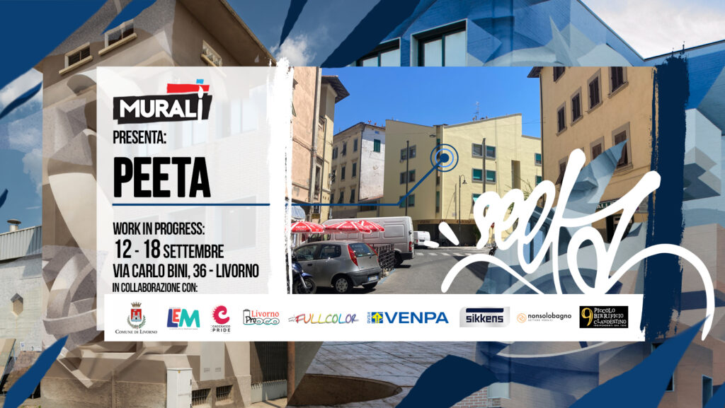 Dal 12 al 18 Settembre, l’artista di fama internazionale Manuel di Rita, in arte Peeta, si occuperà di dipingere la parete di via Carlo Bini 36 (angolo via delle Navi), la cui realizzazione e inaugurazione avverrà in concomitanza con il Cacciucco Pride 2022.