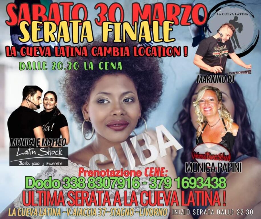 La Cueva Latina trasloca. Da via Aiaccia a Stagno, dove sabato 30 marzo si svolgerà l'ultima serata in questa struttura, alla storica location dell'Imperiale di piazza Belvedere a Tirrenia