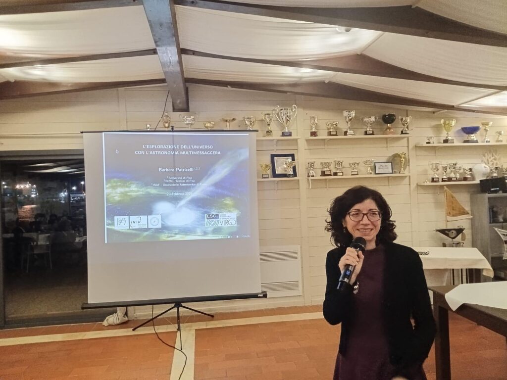 Al centro della serata, un intervento divulgativo dedicato ai “messaggi dell’Universo”. La ricercatrice ha illustrato come la capacità di captare le onde gravitazionali permetta oggi di “ascoltare” eventi catastrofici e remoti, come la fusione di buchi neri o stelle di neutroni, offrendo una prospettiva totalmente nuova rispetto alla tradizionale osservazione luminosa. La relazione è stata accolta con grande interesse e partecipazione da parte dei soci e degli ospiti presenti.