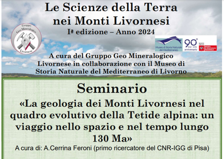 Il primo seminario, dal titolo “La geologia dei Monti Livornesi nel quadro evolutivo della Tetide alpina: un viaggio nello spazio e nel tempo lungo 130 Ma” sarà tenuto da Andrea Cerrina Feroni, già primo ricercatore del CNR-IGG di Pisa, in data 26 gennaio alle ore 17:30 presso la sala Kutufà del Museo di Storia Naturale del Mediterraneo.