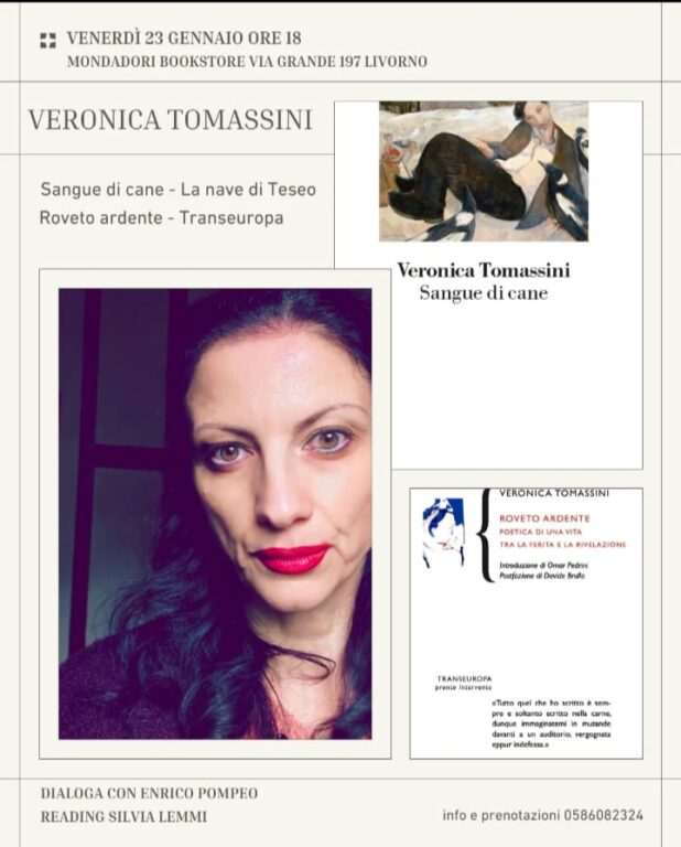 Un riconoscimento nato da un incontro letterario preciso: Sangue di cane (La Nave di Teseo, 2024), il libro che ha fatto conoscere Veronica Tomassini a Pedrini e che resta uno dei testi più potenti della narrativa italiana recente. Un’opera che racconta la marginalità, la caduta, le vite spezzate non come scenari di degrado, ma come luoghi privilegiati per un incontro con la verità. L’incontro livornese sarà moderato da Enrico Pompeo, mentre Silvia Lemmi leggerà alcuni brani proprio da Sangue di cane, restituendo al pubblico quella lingua febbrile e visionaria che ha reso Tomassini una delle voci più originali e anticonformiste del panorama contemporaneo. In Roveto ardente la scrittura si fa confessione senza schermi: periferie, stazioni, case occupate, esistenze ai margini diventano materia viva di una narrazione che non cerca redenzioni facili, ma una bellezza segreta, nascosta negli scarti del mondo. È una letteratura scritta “nella carne”, come dichiara la stessa autrice, vergognata e insieme instancabile. Da Livorno parte dunque un tour che non è soltanto una serie di presentazioni, ma un attraversamento: della parola, della ferita, della rivelazione. Un invito a guardare dove solitamente si distoglie lo sguardo, e a riconoscere che, a volte, è proprio lì che la scrittura trova la sua forma più necessaria. Appuntamento da non mancare quindi per venerdì 23 gennaio alla libreria Mondadori di via Grande.