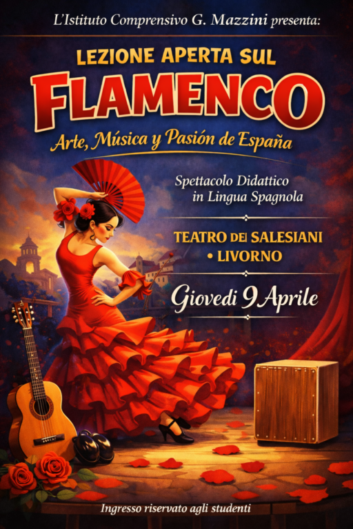 Giovedì 9 aprile, le poltrone del Teatro cittadino dei Salesiani hanno vibrato al ritmo della Spagna più autentica. L’Istituto Comprensivo G. Mazzini ha offerto ai suoi studenti un’esperienza formativa fuori dal comune, organizzando una coinvolgente “Lezione Aperta sul Flamenco” rivolta a otto classi della scuola secondaria di primo grado dell’istituto. L’evento, uno spettacolo didattico interamente in lingua spagnola, ha dimostrato come la scuola possa farsi teatro e l’apprendimento trasformarsi in pura emozione.