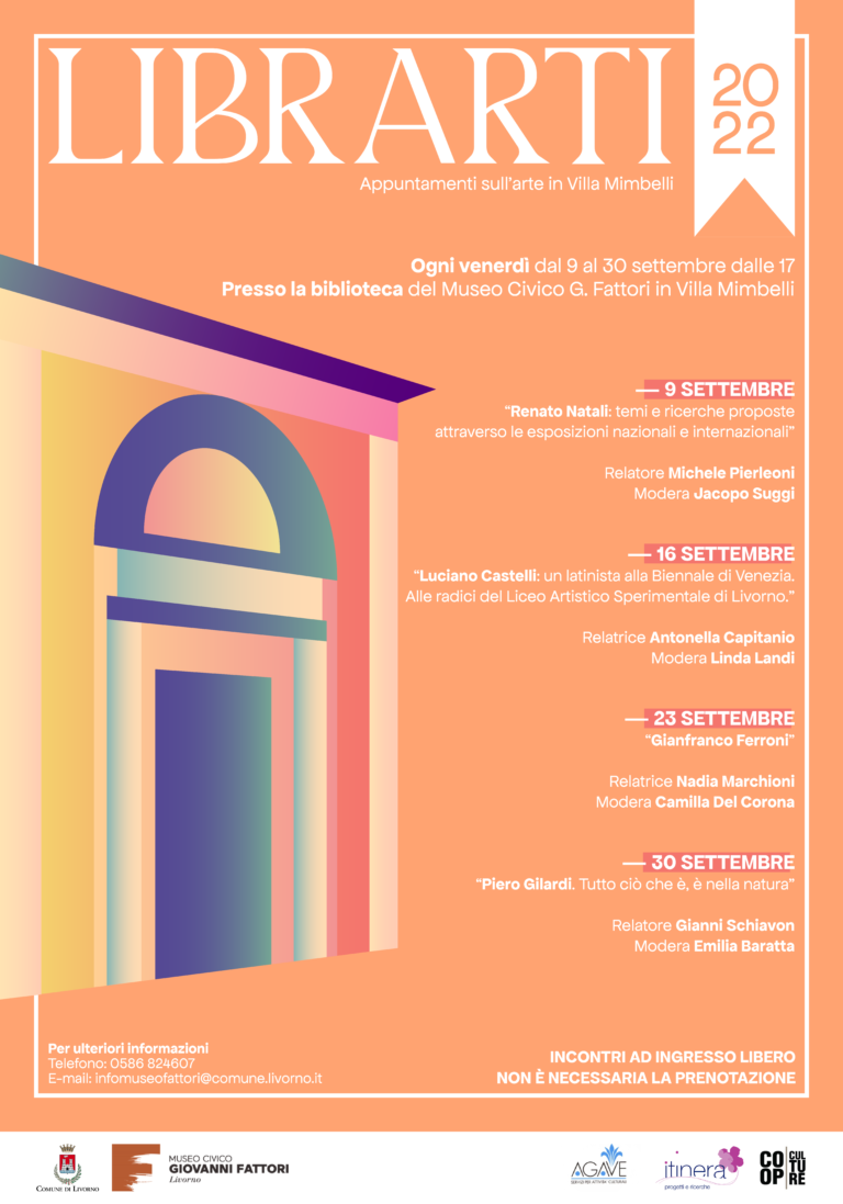 Prende il via venerdì 9 settembre, alle ore 17.00, la seconda edizione del ciclo di incontri “LibrArti”, appuntamenti sull’arte tenuti nel parco, nella biblioteca del Museo Civico Giovanni Fattori, tutti i venerdì dal 9 al 30 settembre. Si tratta di quattro conferenze con altrettanti autori, dedicate a temi e artisti del panorama livornese. L’iniziativa è pensata per valorizzare lo straordinario patrimonio librario della Biblioteca del museo e per approfittare della bella stagione per vivere alcuni pomeriggi all’insegna dell’arte nello splendido parco di Villa Mimbelli.