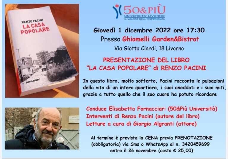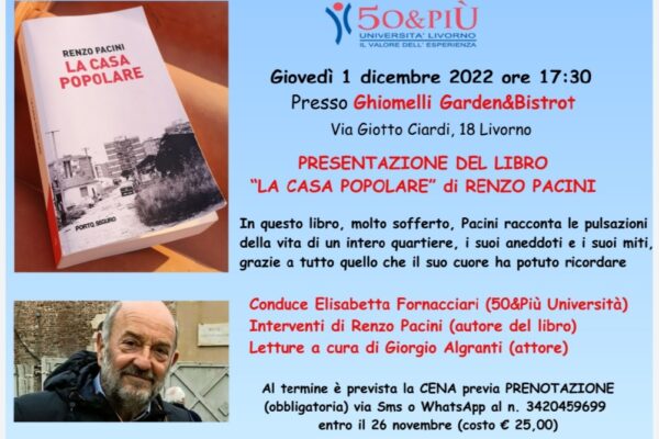 Giovedì 1° dicembre alle 17.30 al Ghiomelli Garden ci sarà la presentazione del libro “La casa popolare” scritto da Renzo Pacini