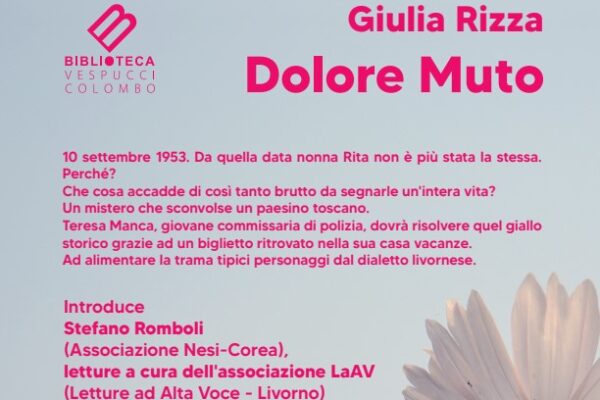 Proseguono gli incontri all’interno dei locali della biblioteca del Vespucci-Colombo, questa volta con Giulia Rizza e il suo “Dolore Muto”. L’appuntamento è per venerdì 20 gennaio alle 18 nell’Aula Magna dell’istituto in via Chiarini, 1. A presentarlo, oltre al professor Michele Cecchini, ci sarà il dottor Stefano Romboli, garante dell’Infanzia presso il Comune di Livorno. La storia si articola e sviluppa tra presente e passato, tra Rosignano e Livorno. Da una data chiave, 10 settembre 1953, il commissario Teresa Manca dovrà risolvere quel giallo storico partendo da un biglietto ritrovato nella sua casa vacanze.
