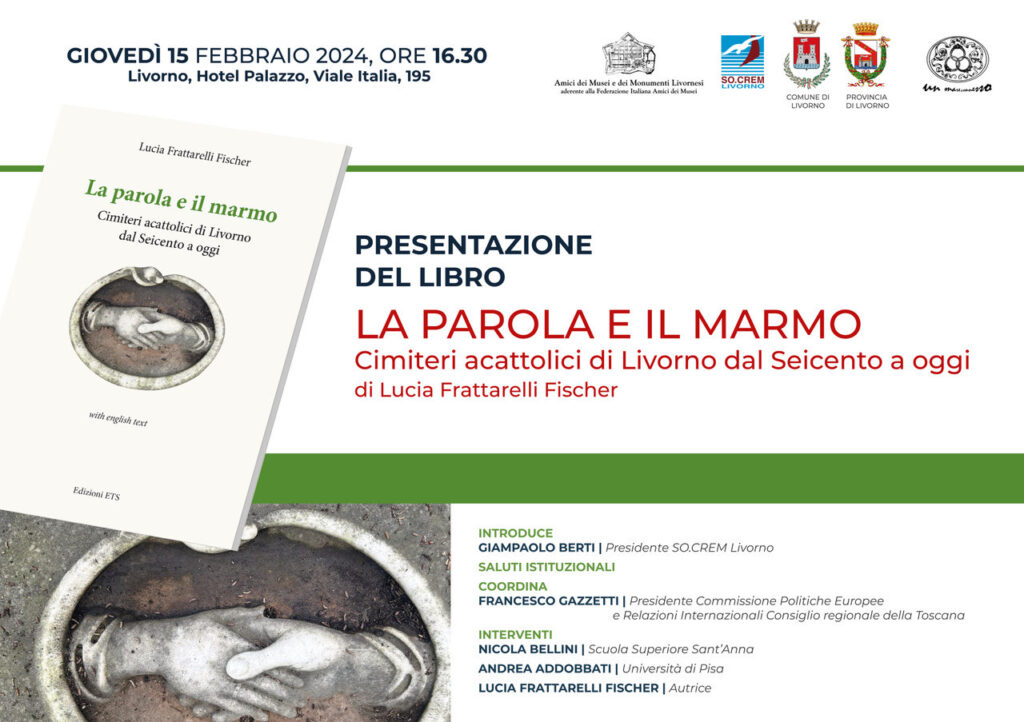 La parola e il Marmo. Cimiteri acattolici di Livorno dal Seicento ad oggi a cura della storica Lucia Frattarelli Fisher. Il libro sarà presentato giovedì 15 febbraio alle ore 16,30 al Grand Hotel Palazzo di Livorno