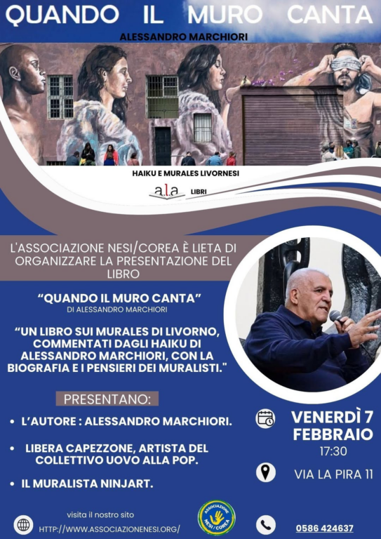 Venerdì 7 febbraio alle 17.30 ci sarà la presentazione del libro edito da A.L.A. Libri: “Quando il muro canta”, di Alessandro Marchiori, nei locali della sede dell’Associazione Nesi in via La Pira, 11 a Corea.