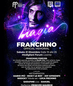 21 dicembre: al Modigliani Forum di Livorno, in una lunga ed eccezionale serata che durerà dal tramonto all’alba, si celebra la figura di un’icona assoluta, popolarissima e felicemente “irregolare” della scena dance italiana: Franchino