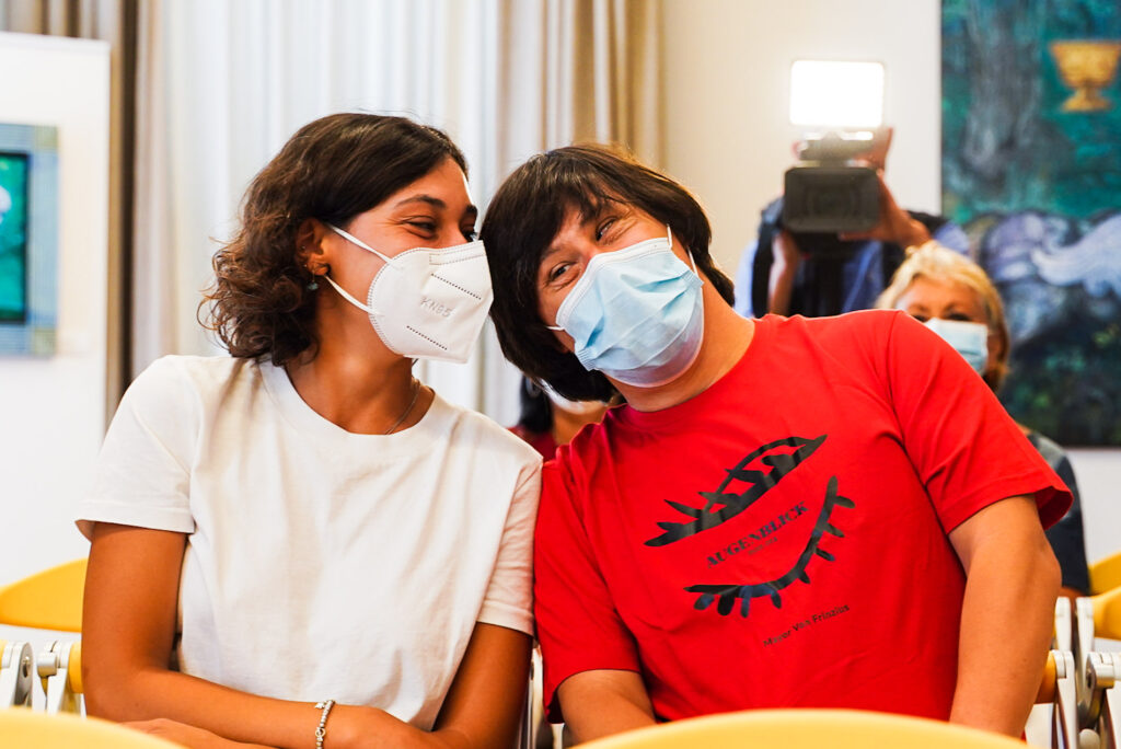 A partire da questo pensiero la Mayor Von Frinzius ha creato il nuovo spettacolo “Augenblick, non ora”, un inno alla forza di andare avanti anche quando i cambiamenti della vita ci mettono con le spalle al muro, inno rappresentato dalla potenza dello sguardo dell’altro, che ci permette di immedesimarci e che, secondo Levinas, ci permette di ritrovarci e di comprendere davvero chi siamo. Il batter d’occhio è l’istante da fissare per sempre: ogni attimo ha un valore infinito perché rappresenta l’eternità nella sua interezza, ed al tempo stesso può essere proprio il medesimo attimo in cui, sbattendo gli occhi, il nostro mondo viene completamente stravolto da una notizia, un avvenimento, un qualcosa che cambia irrimediabilmente, che sia purtroppo o per fortuna: allo stesso modo, in un batter d’occhio gli oltre 400 posti disponibili in Fortezza Vecchia il 13 luglio, in occasione della rassegna Palcobaleno, per poter vedere “Augenblick, non ora” sono purtroppo terminati, lasciando alla MVF la soddisfazione di riempire una nuova platea dopo una lunga latitanza forzata ed anche un grande dispiacere nei confronti di tutti coloro che non sono riusciti ad acquistare il proprio biglietto.